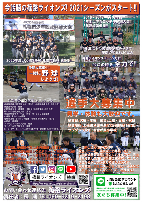 篠路ライオンズ新入団選手・見学練習体験随時大募集中です!